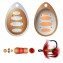 Блесна Pontoon 21 Synchrony оригинальная вращающаяся блесна, со смещённым вперёд центром тяжести, способствующем более стабильной уверенной игре. Оригинальная раскраска лепестка, покрытого рисунком с обеих сторон создаёт в воде при игре подобие объёмного мерцающего силуэта, привлекает рыбу с большого расстояния. Тройники, оснащённые мушкой, которая сама по себе является приманкой, которую так и хочется ущипнуть!